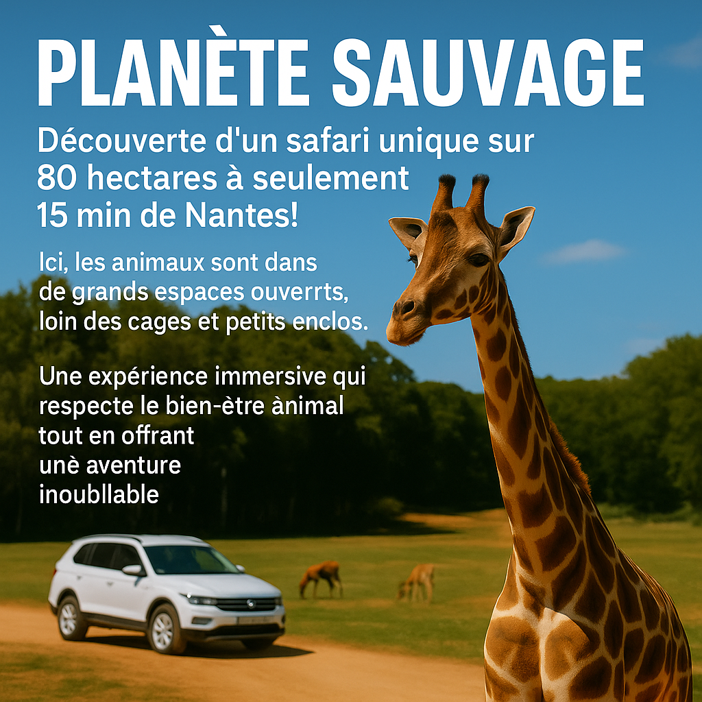 À seulement 15 minutes de Nantes, vivez une immersion totale parmi girafes, zèbres et autres espèces fascinantes.