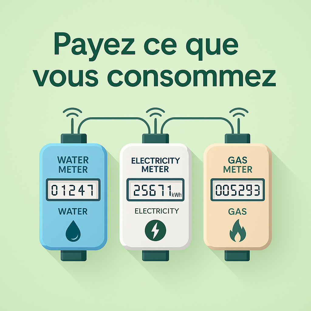 En refacturant l’eau, l’électricité et le gaz au réel, vos voyageurs paient uniquement leur consommation. Résultat : prix de base plus attractif, moins de commission Airbnb/Booking, et plus de marge pour vous. Transparence gagnant-gagnant pour propriétaire et voyageur !